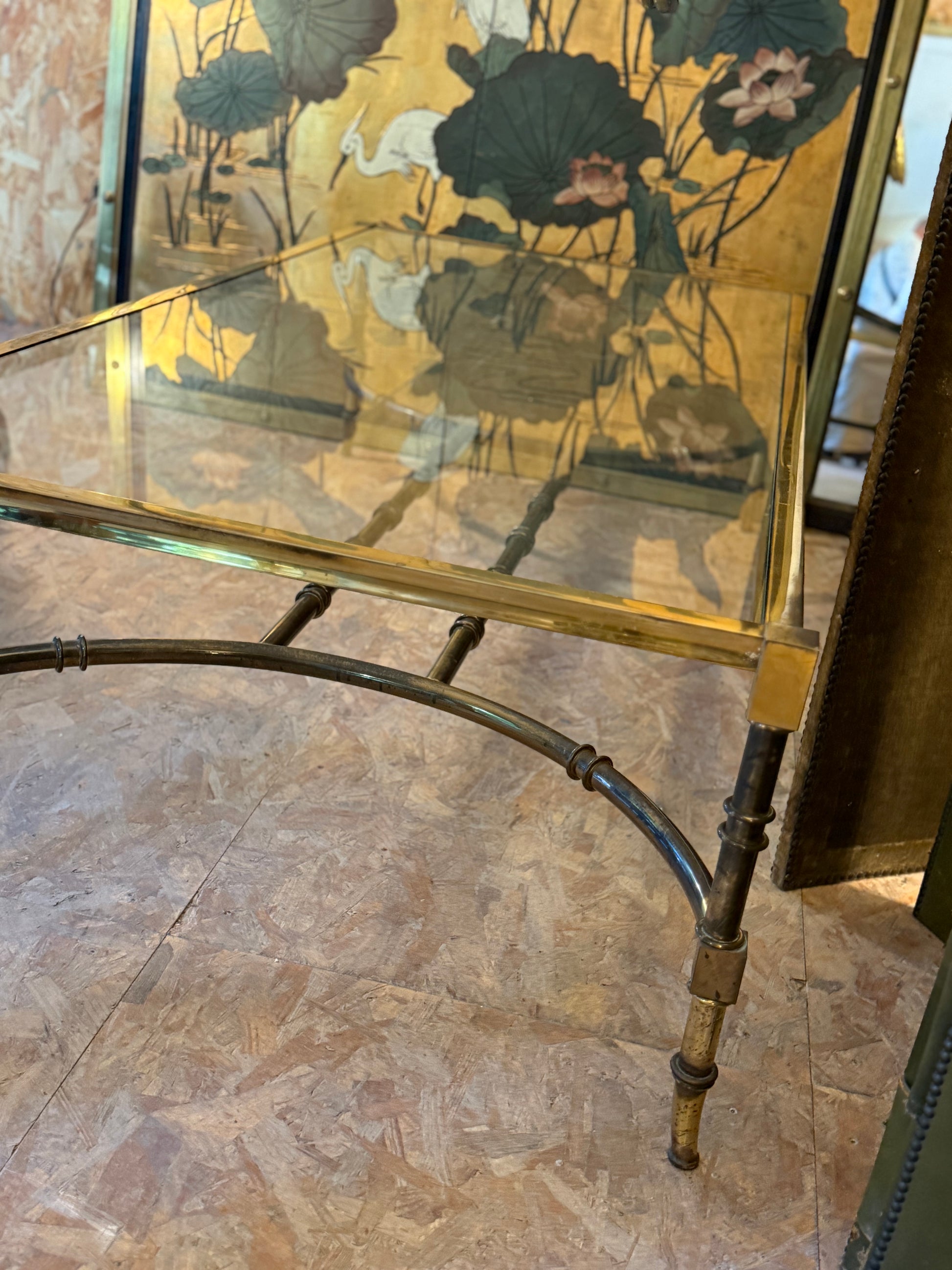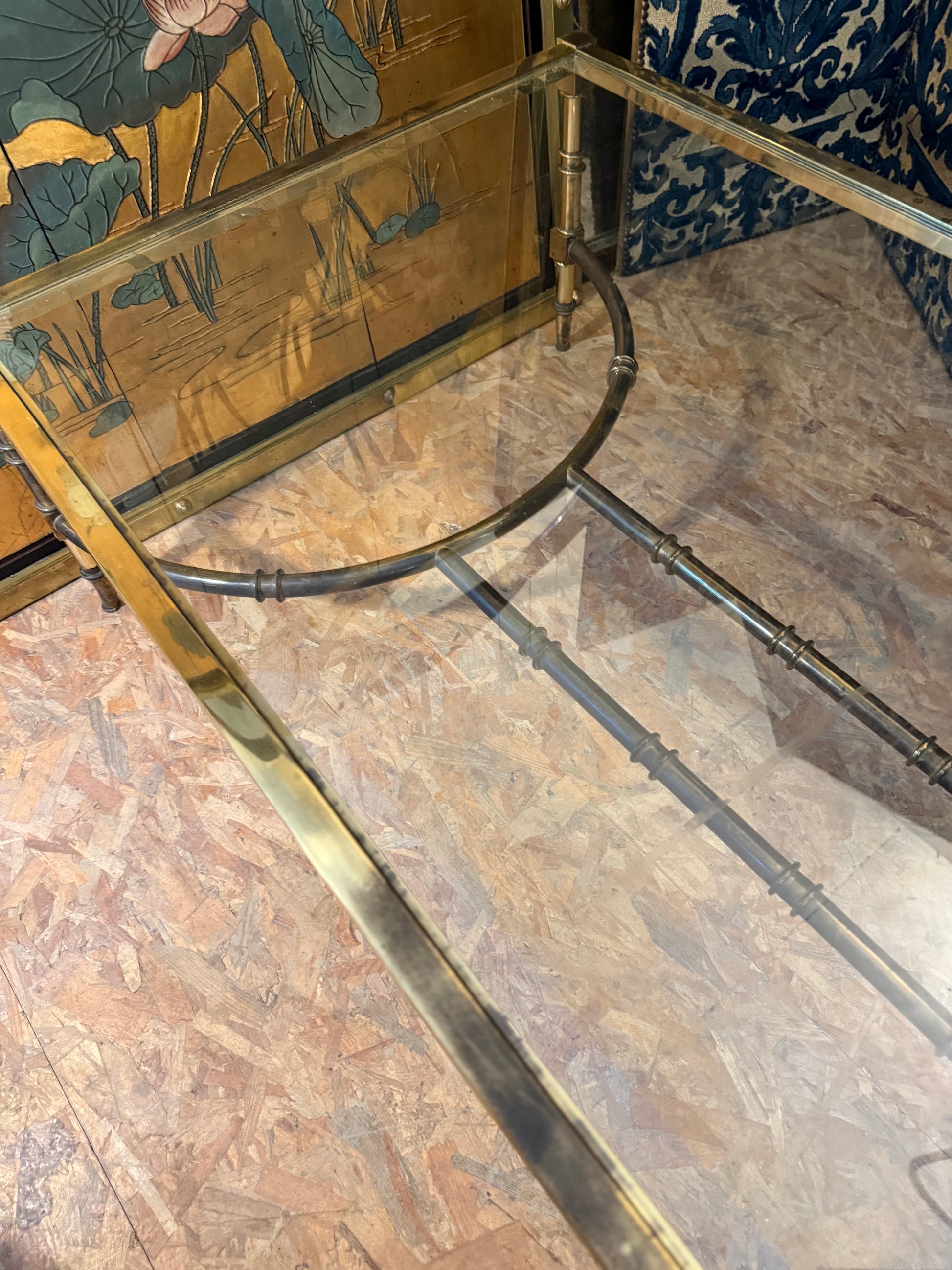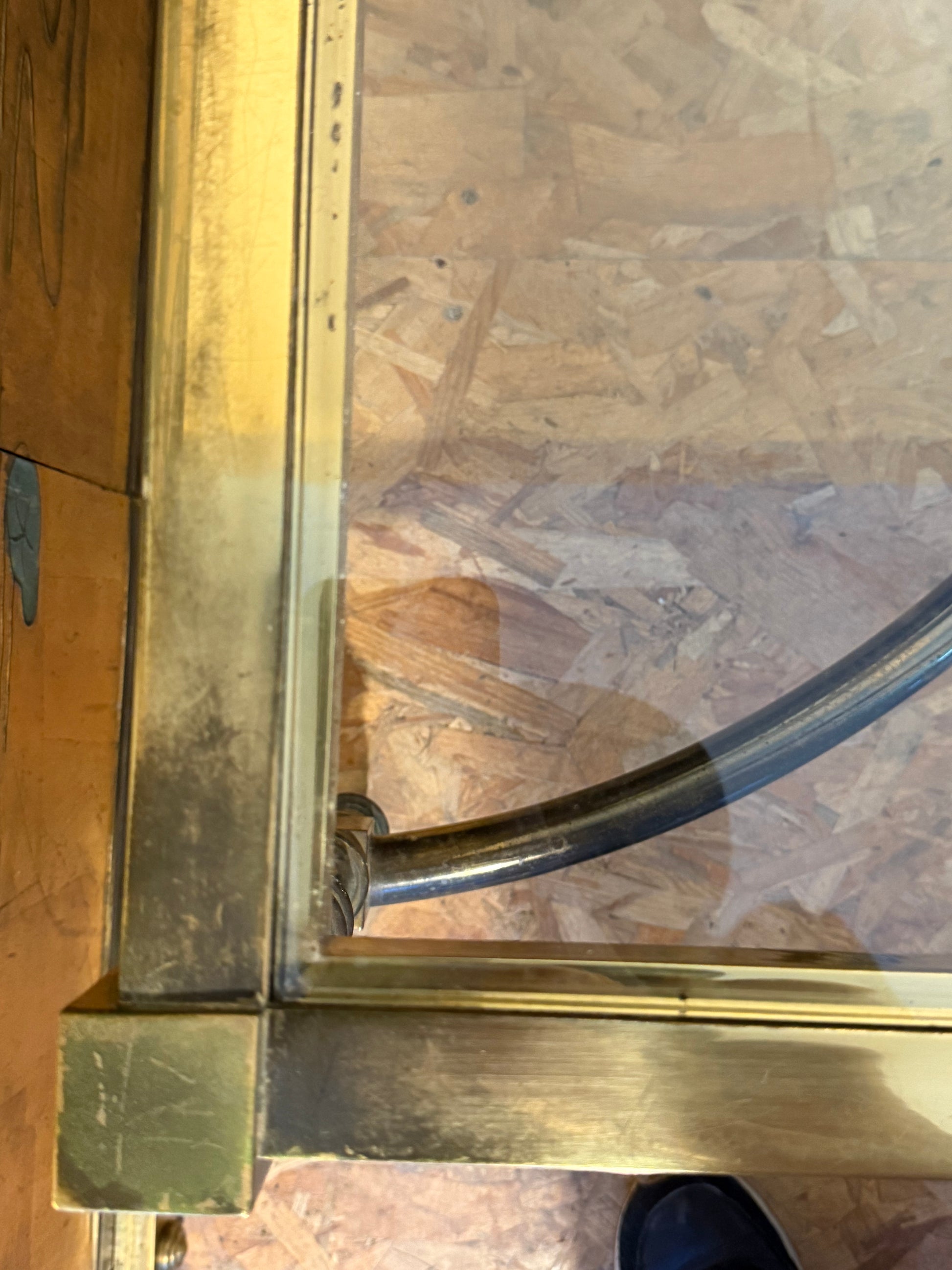 Brass And Iron Glass Top Coffee Table - Midcentury