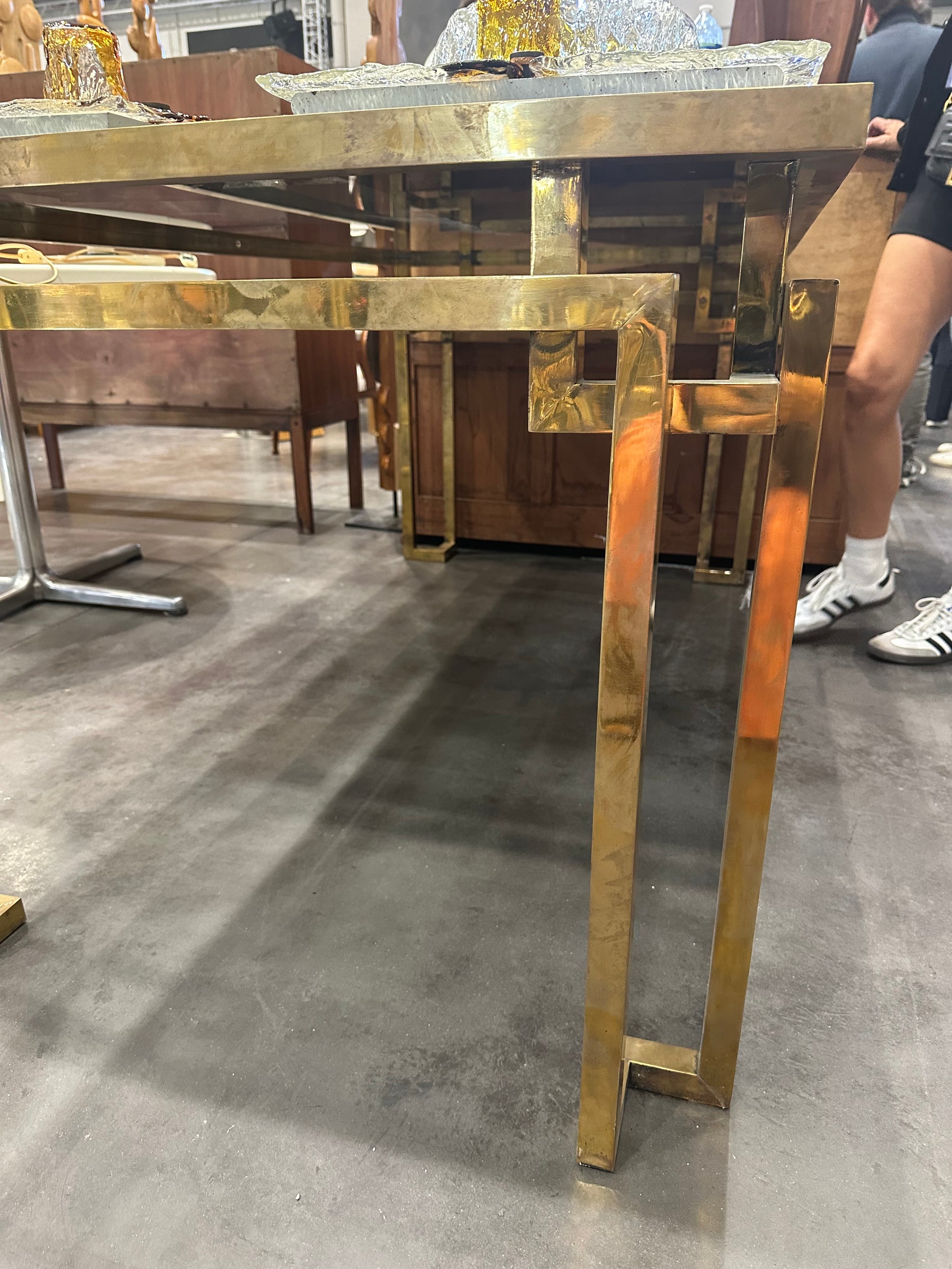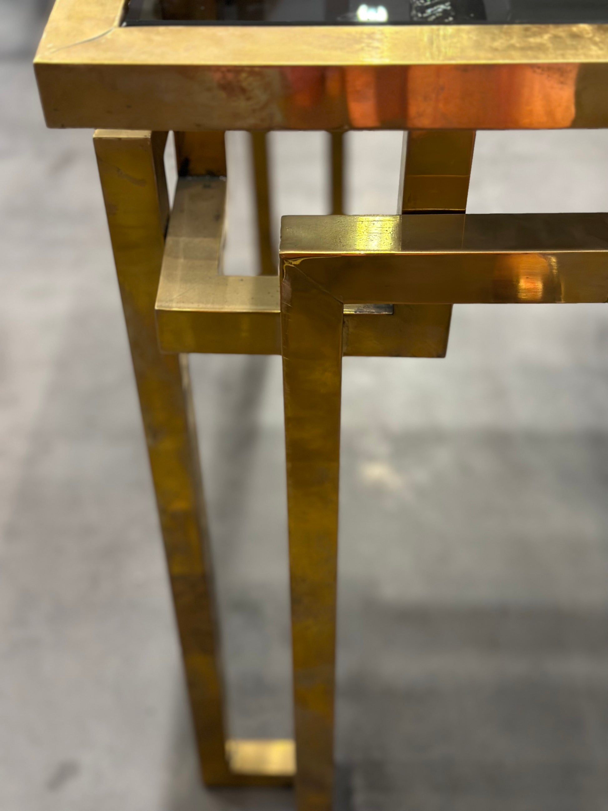 French Brass Dining Table With Black Top - Midcentury