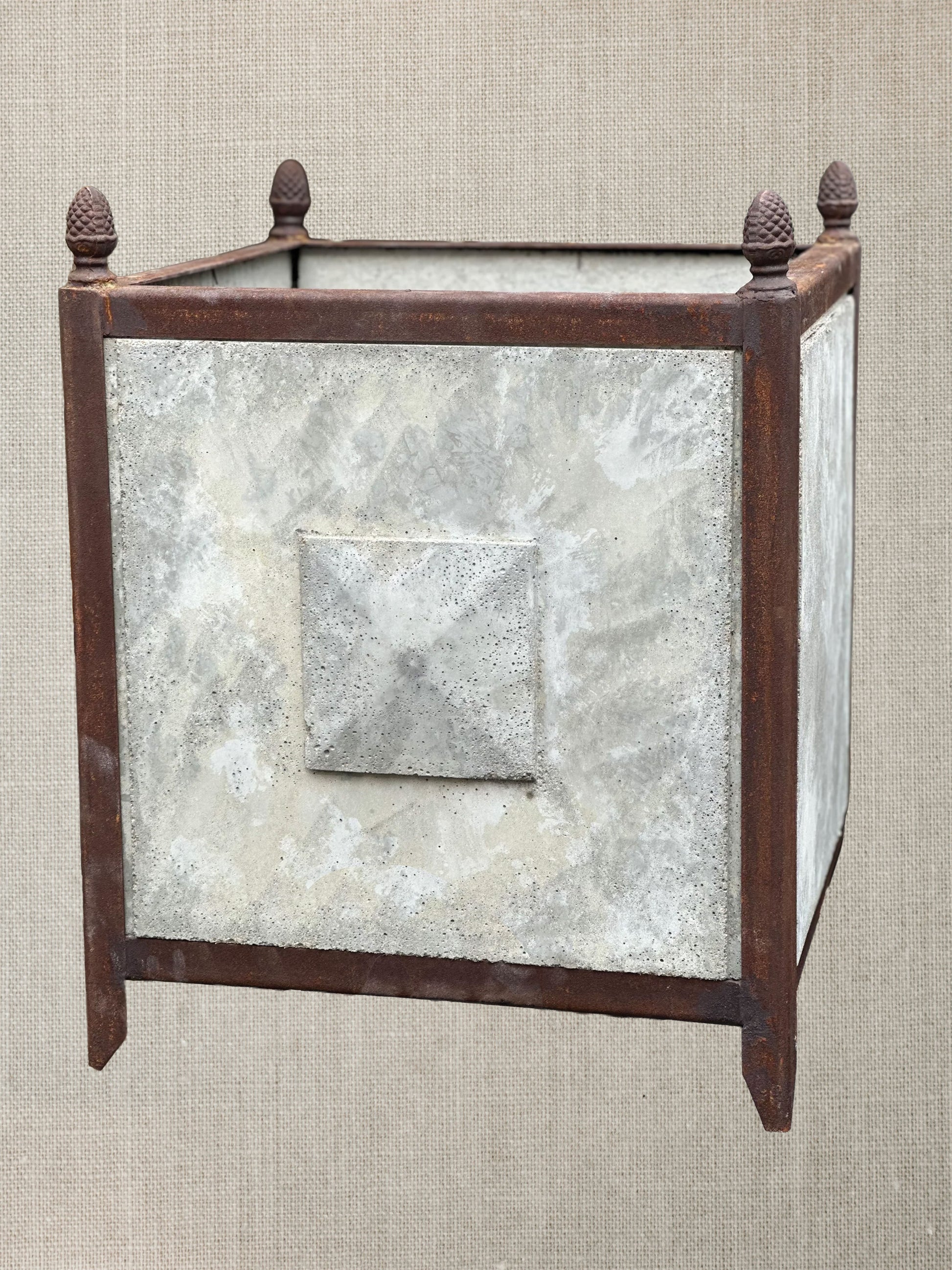 French Concrete Planters With Iron Detail