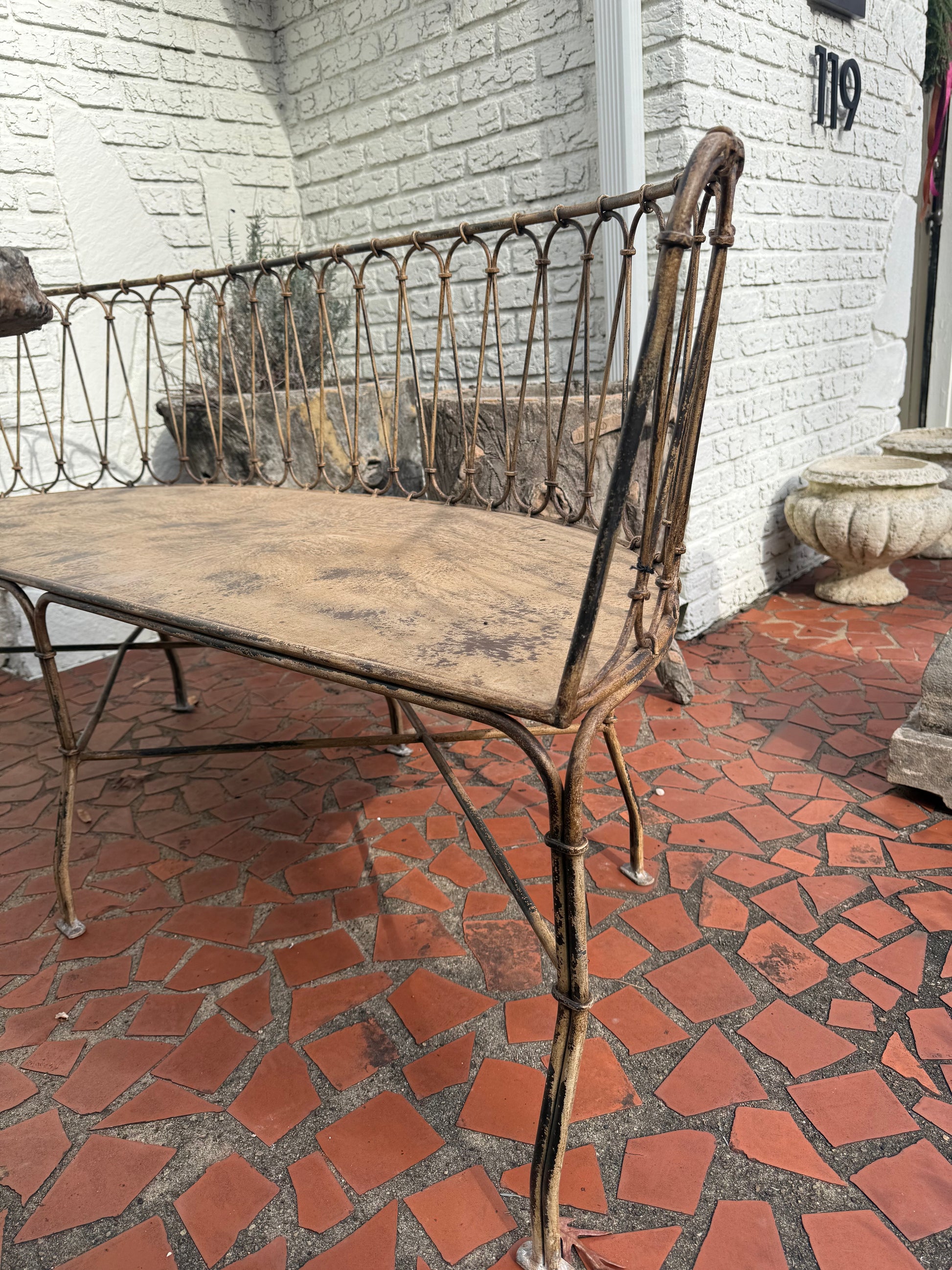 French Metal Outdoor Curved Bench